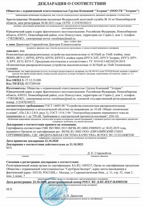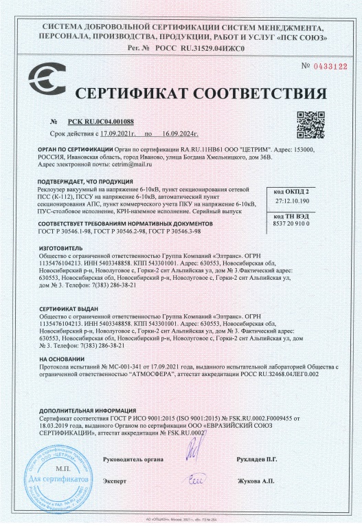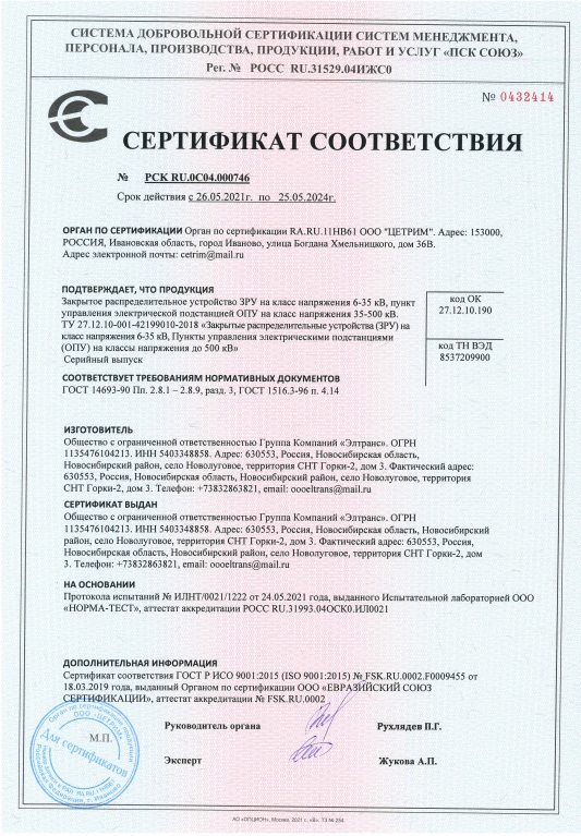 Все виды продукции сертифицированы органами Гостстандарта России. Контроль качества выпускаемой продукции осуществляется начиная с входного контроля комплектующих и заканчивая испытанием готового изделия.